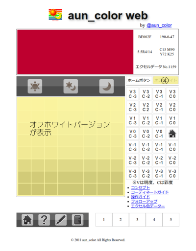 上の中央にある、あうんカラーマークをタップすると、インテリアで重宝する、 オフホワイトバージョンが開きます。
