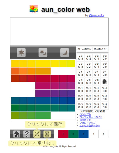⑦一時保存した状態で、セーブボタンを押すと、色データを保存することができます。